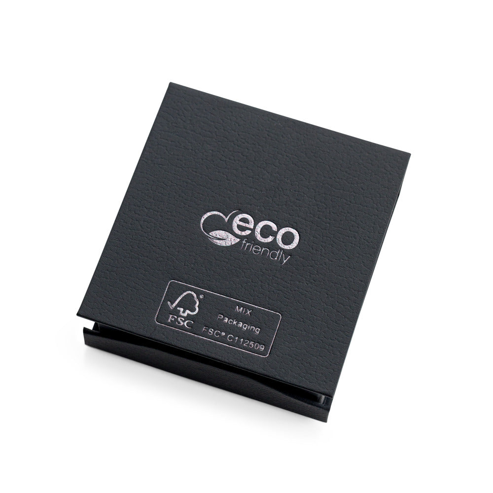 • Packed in an eco-friendly black leatherette-covered box with a magnetic closure and cloth inlay
